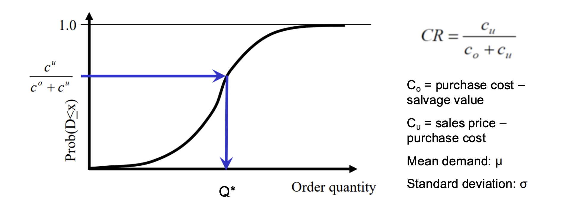 - : holding (overage) cost per unit remaining at the end of the period
