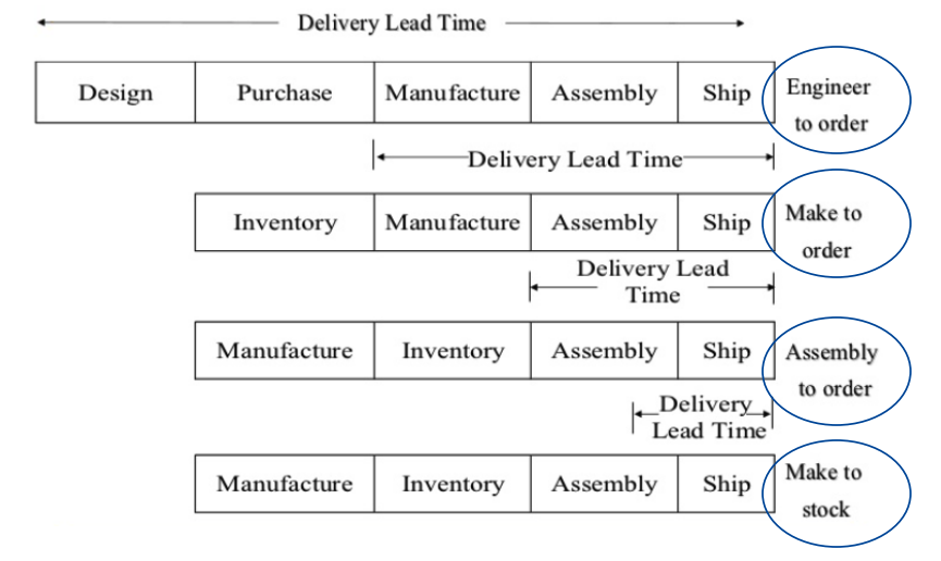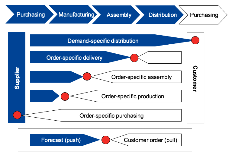 - time postponement: delaying the final assembly closer to the customer's order