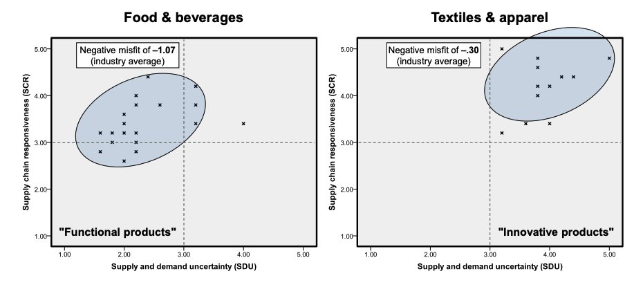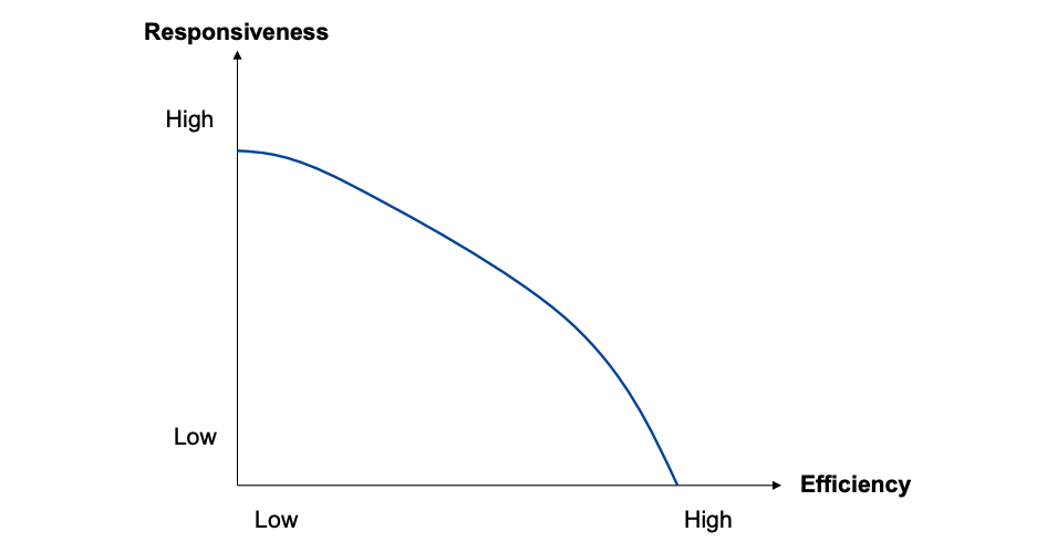 resulting in a whole supply chain that moves away from the efficient fronties due to higher costs and lower responsiveness.