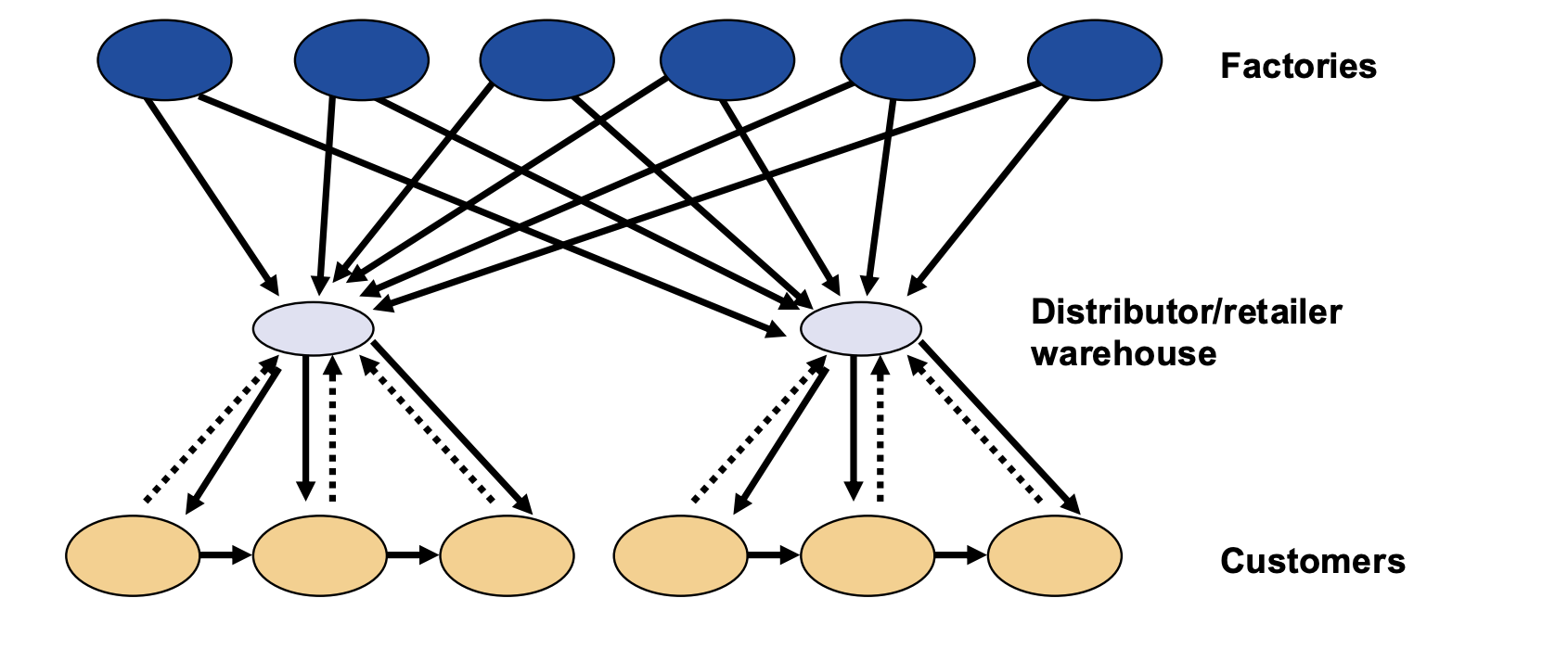 Example: the Bullwhip effect in post-pandemic retailDuring covid, demand for Peloton products exploded, the company received a lot of orders and therefore ordered massive amounts of inventory. When then demand stabilized, they were left with inventoru excess.